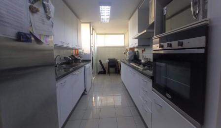 Amplio hall de entrada living comedor con salida a terraza, amplia sala de estar, cocina impecable full equipada, moderna, comedor de diario y logia. Pieza y baño de servicio. Baño de visitas