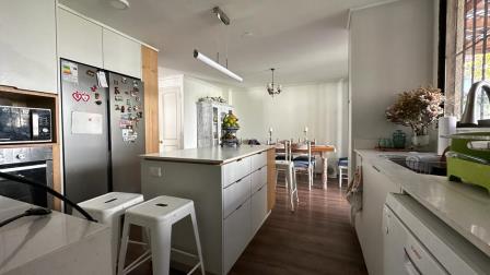 Primer Piso: hall, living muy luminoso, comedor con cocina integrada, remodelada con isla, encimera, horno, muchas despensas. Lavadero amplio cerrado. Pieza y baño de servicio. Baño de visitas.