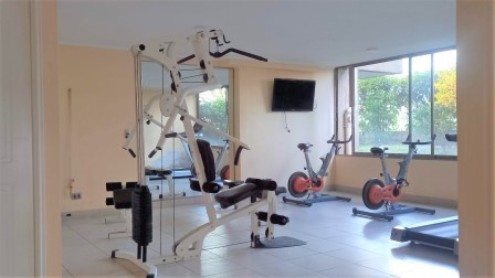 El edificio cuenta con conserjería día y noche, salón multiuso, gimnasio, lavandería, piscina temperada, estacionamientos de visita en el interior, con entrada independiente de los residentes.